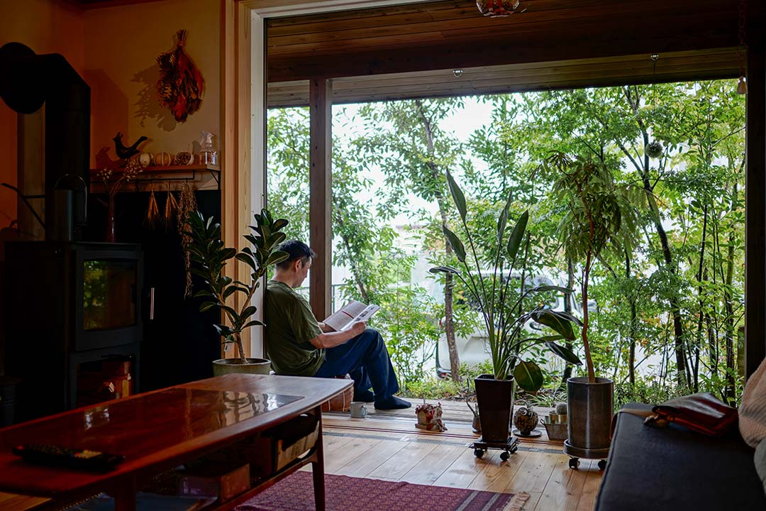 窓外の豊かな緑を眺めながら、お気に入りの家具や照明に囲まれて、