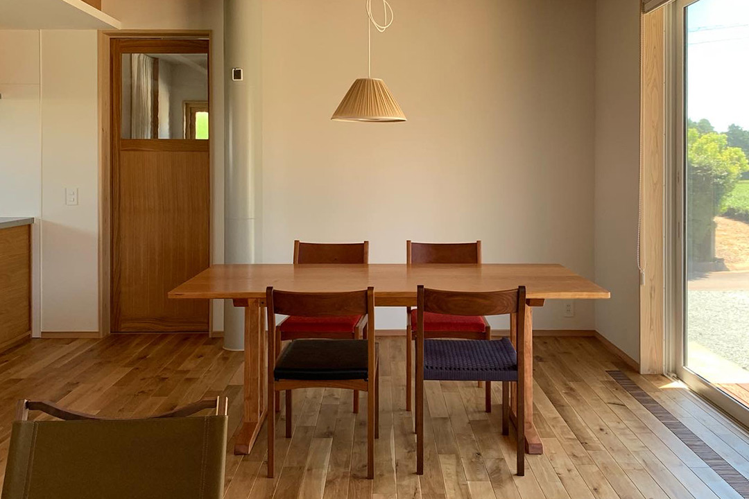 「家族が集うダイニングの家具にはこだわりたい」というお施主様が選んだ家具は、秋山木工のテーブルと宮崎椅子工房のダイングチェア。
