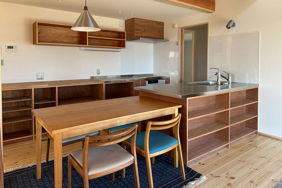 今回の住まい手家族が選ばれたのは、面材にラワン材を使ったキッチン。